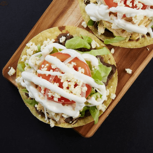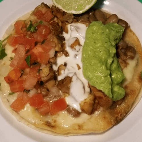 Meat choice, beans, lettuce, cheese, sour cream, & pico de gallo